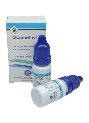 Капли Окуметил (Ocumethyl) разработаны на основе трех действующих веществ - сульфат цинка, дифенгидрамина гидрохлорид, нафазолина гидрохлорид . В 10 мл лекарственного раствора содержится по 10 мг каждого активного компонента . В качестве вспомогательных ингредиентов выступают: натриевая соль лимонной кислоты (цитрат натрия);