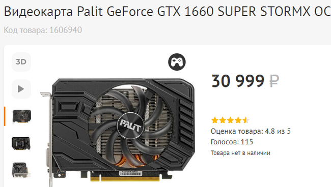 Как и во всем остальном мире, в России наблюдается дефицит видеокарт . Цены на них продолжают расти . Так, далеко не самая мощная GeForce GTX 1660 SUPER стоит в российской рознице около 70 000 тысяч рублей .