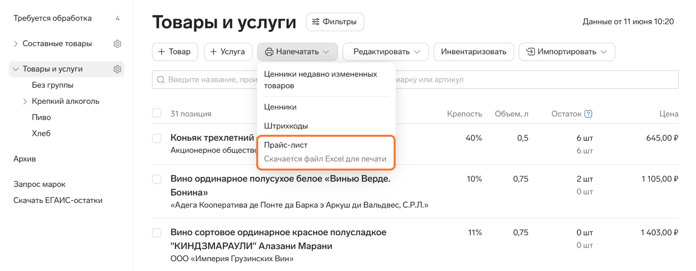 Продукты пятый стол