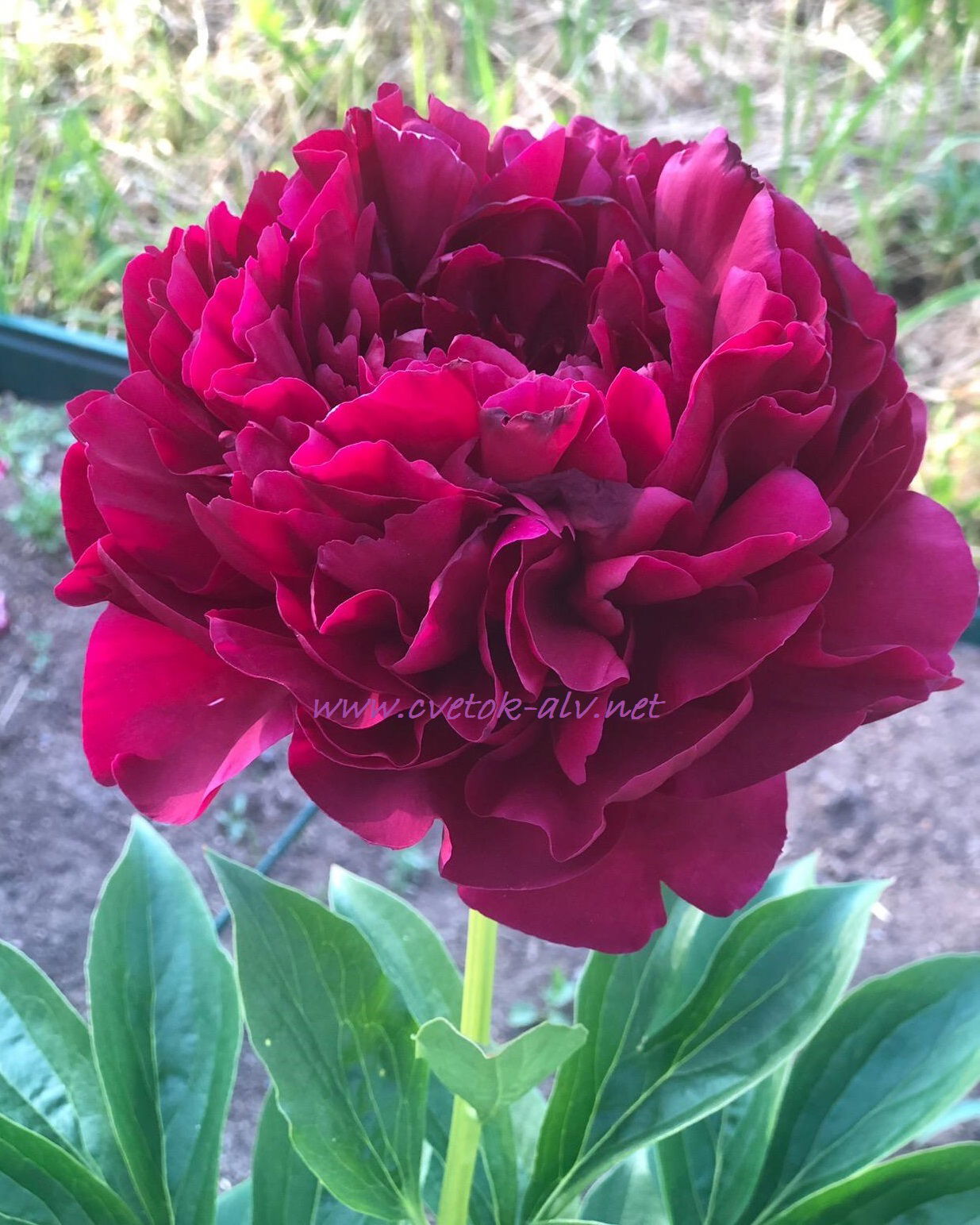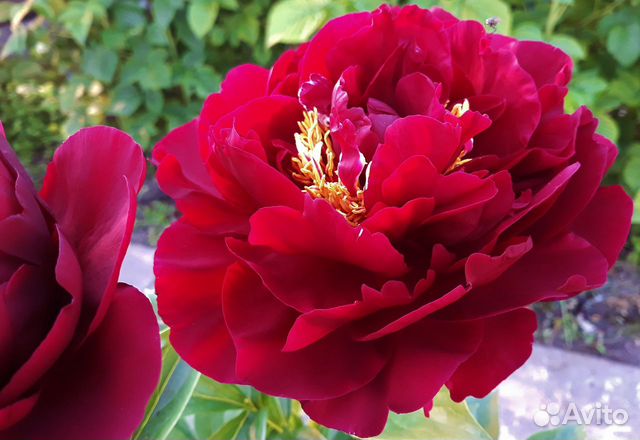 Пион Олд Фейтфул межвидовой гибрид . Цветы махровые, розововидные, диаметром 20 см . Тёмно-красные, бархатистые с приятным ароматом . Лепестки крупные, вогнутые, очень плотные .