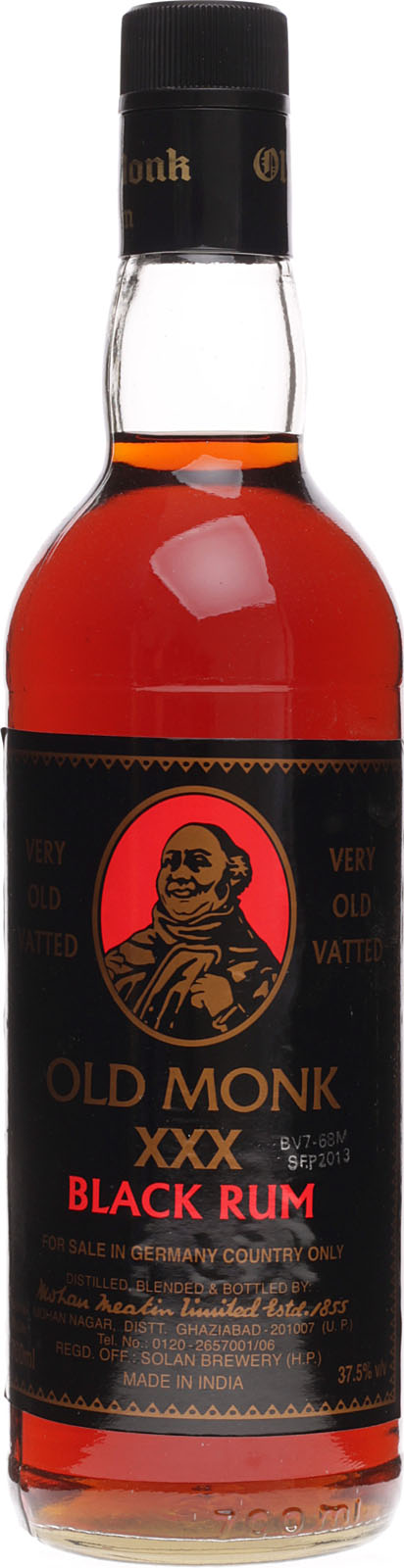 Old Monk Rum is an iconic vatted Indian dark rum, launched in 1954.[1] It is blended and aged for a minimum of 7 years. It is a dark rum with a distinct vanilla flavour, with an alcohol content of 42.8%.[2] It is produced in Ghaziabad, Uttar Pradesh.