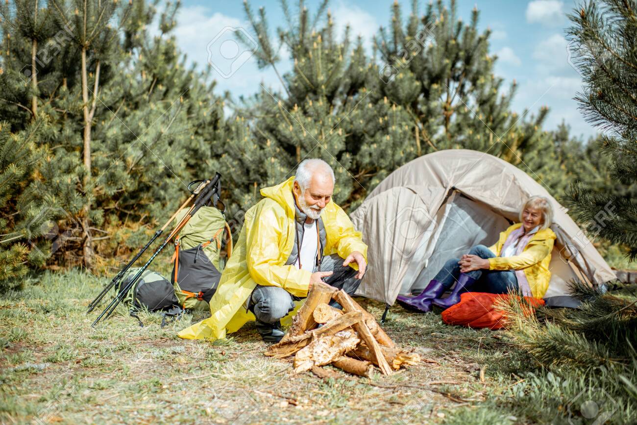 Older couple having outside woods