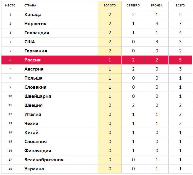 Олимпийская таблица сочи