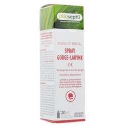 OLIOSEPTIL® Nez-Gorge / для носа и горлаУникальный комплекс из 7 эфирных масел, 100% чистых и натуральных, включая эвкалипт шаровидный (Eucalyptus globulus), который улучшает и оптимизирует функционирование дыхательной системы (нос), а также успокаивает горло .