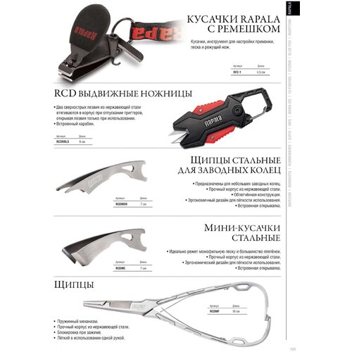 RAPALA RCD Mini Clipper (RCDMC) - Fin şirketi Rapala'dan (Rapala) olta ve kordonları kesmek için yedi santimetrelik hafif ve dayanıklı balıkçılık mini kesicileri. Yüksek kaliteli paslanmaz çelikten yapılmıştır. Yerleşik bir açıcı ile donatılmıştır. Monofilament ipi ve çoğu örgüyü kesmek için idealdir• Dayanıklı paslanmaz çelik gövde• Kullanım kolaylığı için ergonomik tasarım• Dahili şişe açacağıÖzellikleri:• Uzunluk: 7,3 cm.• Kesici kenar: 14 mm.• Malzeme: paslanmaz çelik Mini çelik kesiciler - monofilament olta ve çoğu örgüyü kesmek için idealdir. Kullanım kolaylığı için dayanıklı paslanmaz çelik gövde. Dahili açıcı.