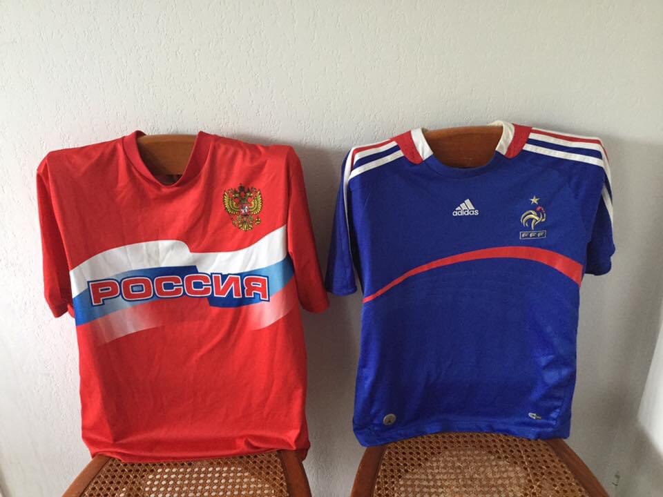 И вот тогда были куплены две майки – для дела. В силу своего происхождения и местонахождения Оля не могла выбрать, поэтому болела и за русских и за французов. Когда играли те или другие, надевала соответствующую майку. Но однажды случилось непоправимое: русские играли с французами. Оля нацепила обе. Посидев так часок и прикинув, что французы выигрывают, сделала выбор - стянула красную.