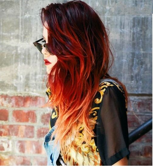 Как ни странно, красный тон универсальный . Такая вариация омбре прекрасно смотрится на темных волосах , но при удачном подборе оттенка делать ее можно на русых и на светлых локонах .