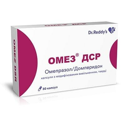 Омез ДСР: инструкция по применению, аналоги и отзывы, цены в аптеках России Омез ДСР - это комбинированный препарат, регулирующий моторную функцию ЖКТ и ингибирующий секрецию соляной кислоты . Двещество - омепразол (в виде пеллет с кишечнорастворимым покрытием) 20 мг, домперидон (в виде пеллет замедленного высвобождения) 30 мг .