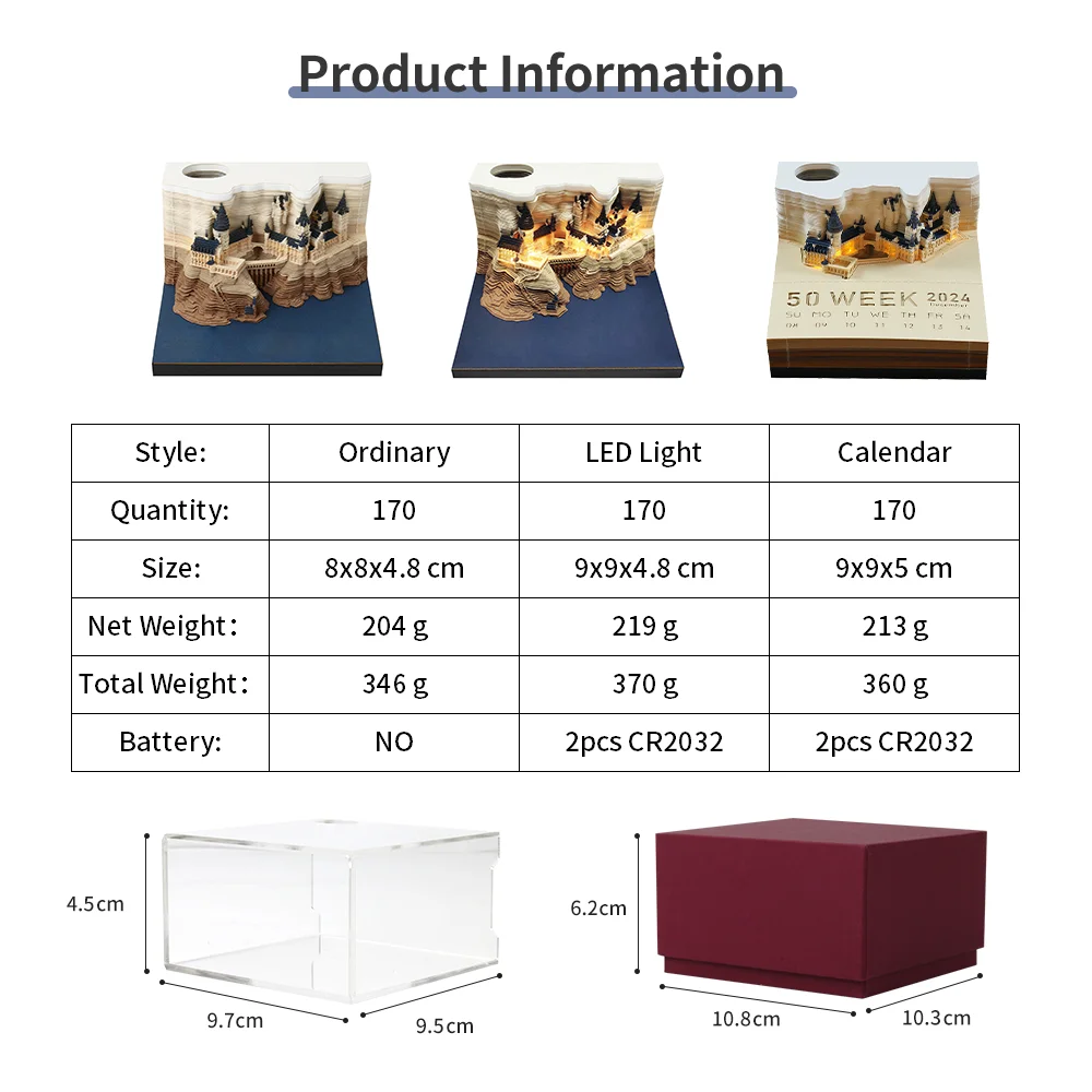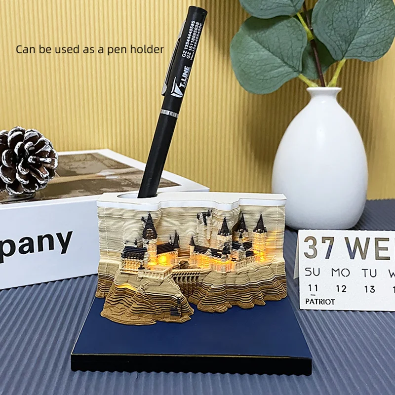 Omoshiroi Block 3D Notepad 2024 Calendar 3D Howarts Castle Led Memo Pad Note Paper Block Notes 3D Office Accessories Xmas Gift - Купить с бесплатной доставкой