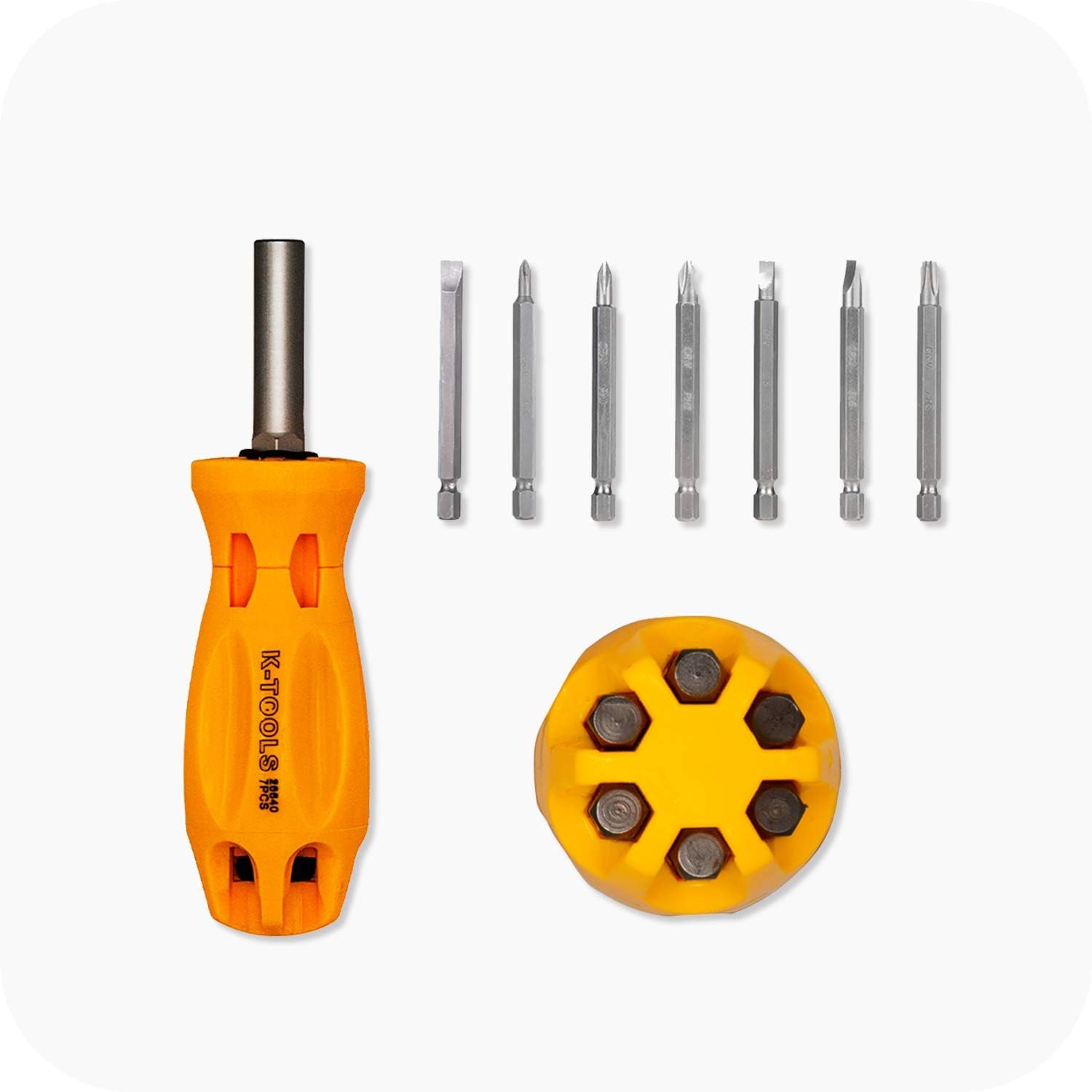 A screwdriver is a tool for driving screws and rotating other machine elements with the mating drive system . The screwdriver is made up of a head or tip, which engages with a screw, a mechanism to apply torque by rotating the tip, and some way to position and support the screwdriver .