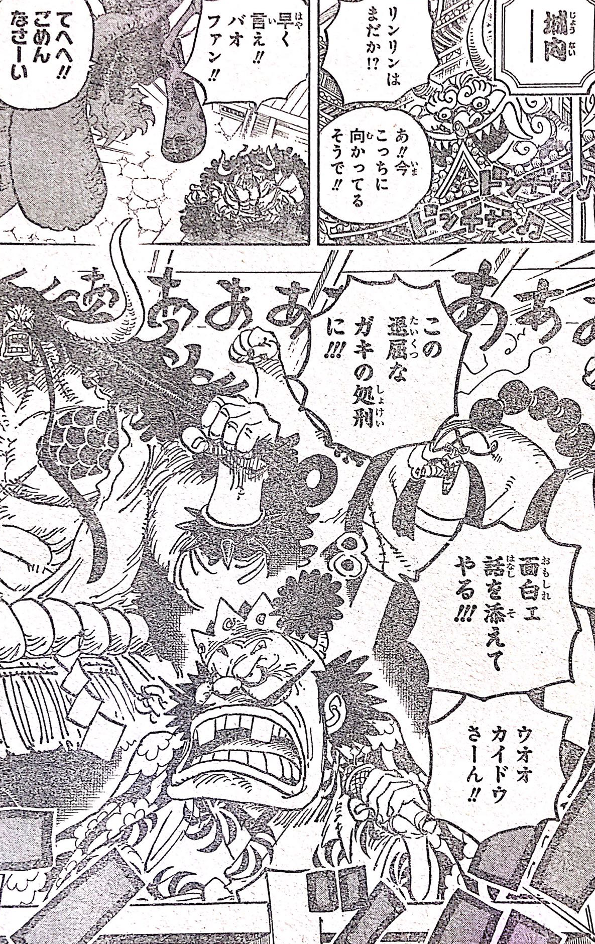 Kaido: Well, anyway, I'll announce it along with Momonosuke's execution.