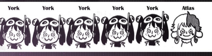 O: Lo definisci "Banana"?! Questo mi ha sorpreso, ahahahah. Beh, non sembra ci sia un nome ufficiale per quell'acconciatura, e in realtà loro nemmeno ne parlano ahahahah! Quindi, l'acconciatura dei draghi celesti si chiama "nobile apribottiglie", visto che assomiglia all'apribottiglie usato per il vino, così è facile da ricordare. L'avete aperto tutti?!