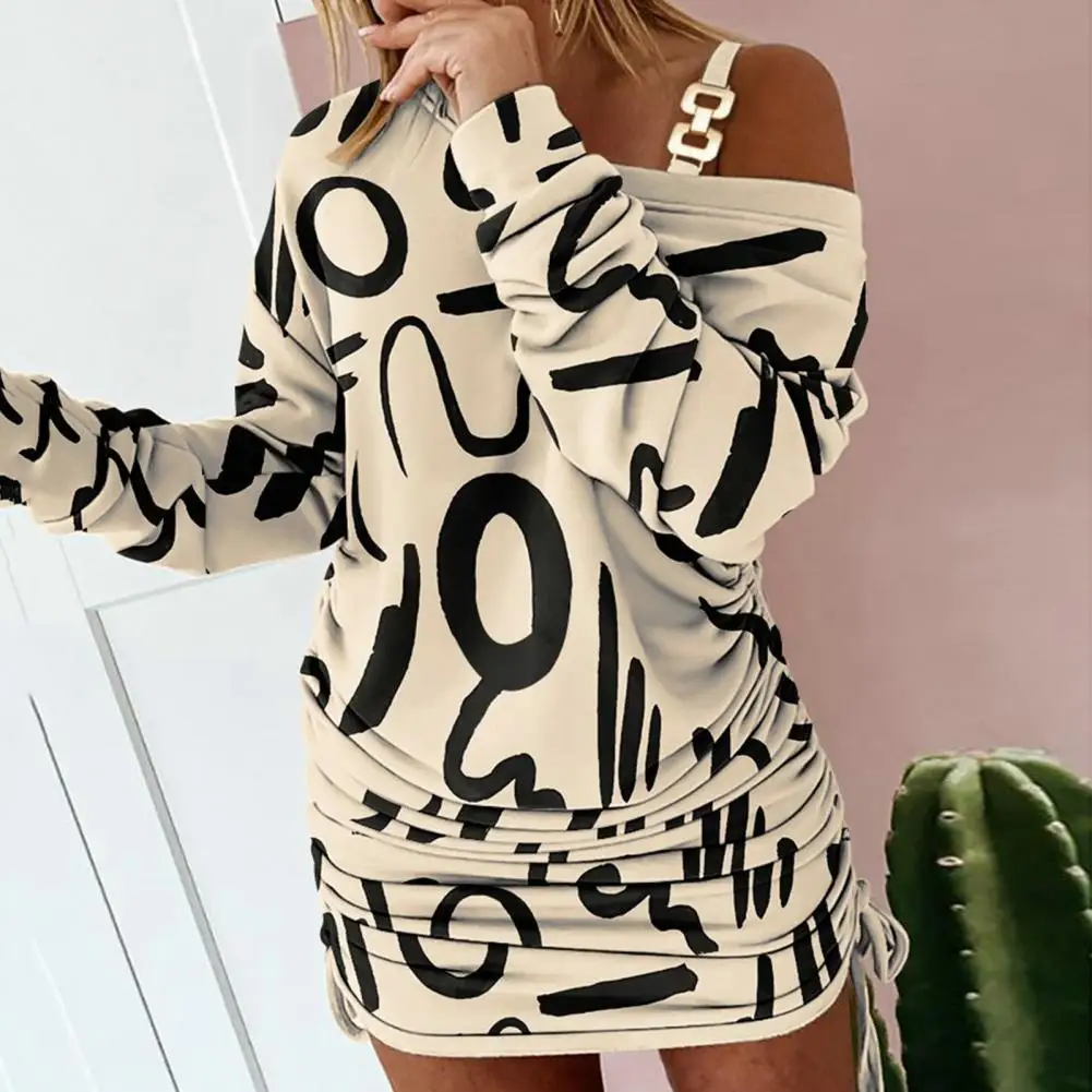 YMpLpwbqpLHere you can buy One Shoulder Dress Chic One Shoulder Mini Dress Colorful Print Chain Decor Soft Fabric for Fall Spring Women Printed Dress with free delivery to your post office.