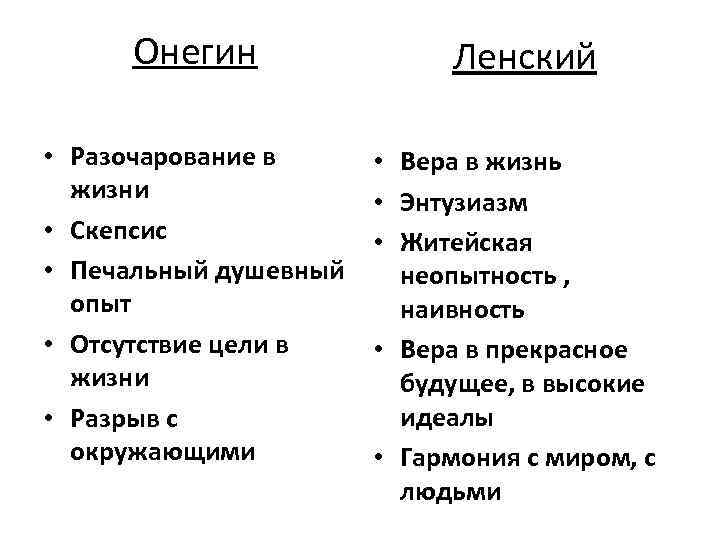 Онегин ленский кратко