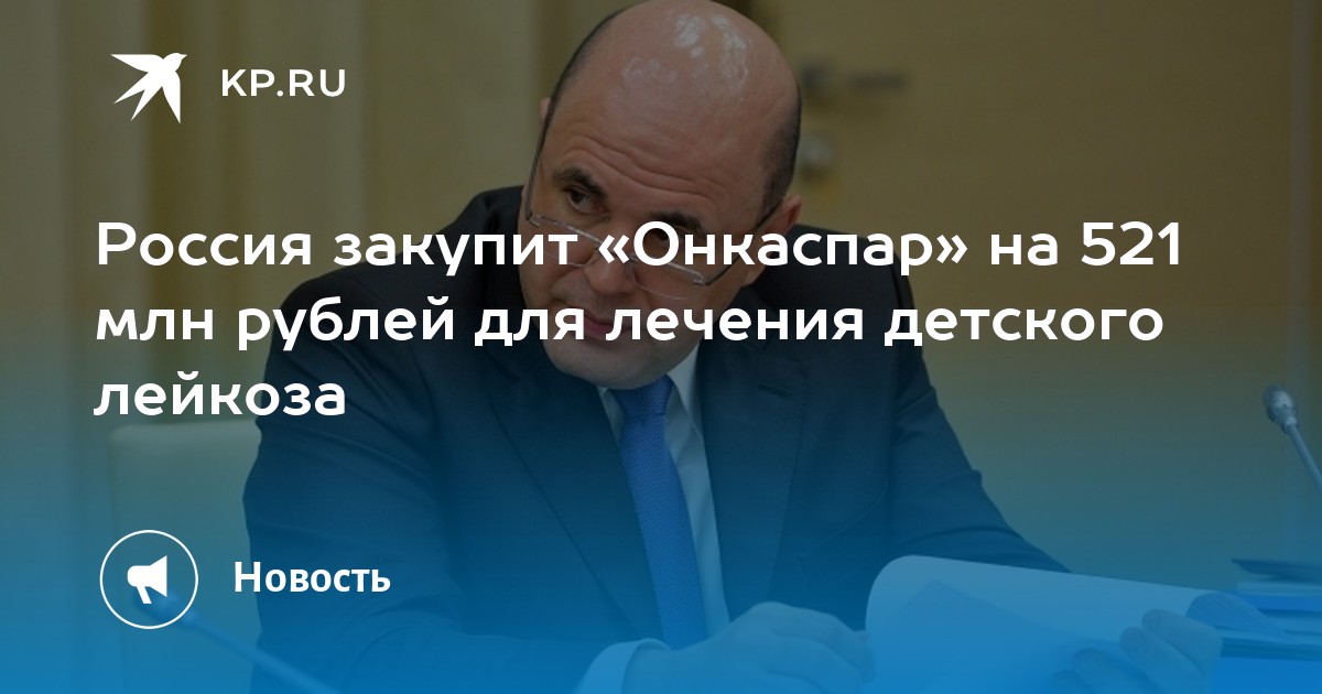 Правительство выделит 521 млн руб . на закупку, ввоз и доставку препарата Онкаспар, который предназначен для лечения острого лейкоза у детей . Соответствующий указ подписал премьер-министр России Михаил Мишустин .