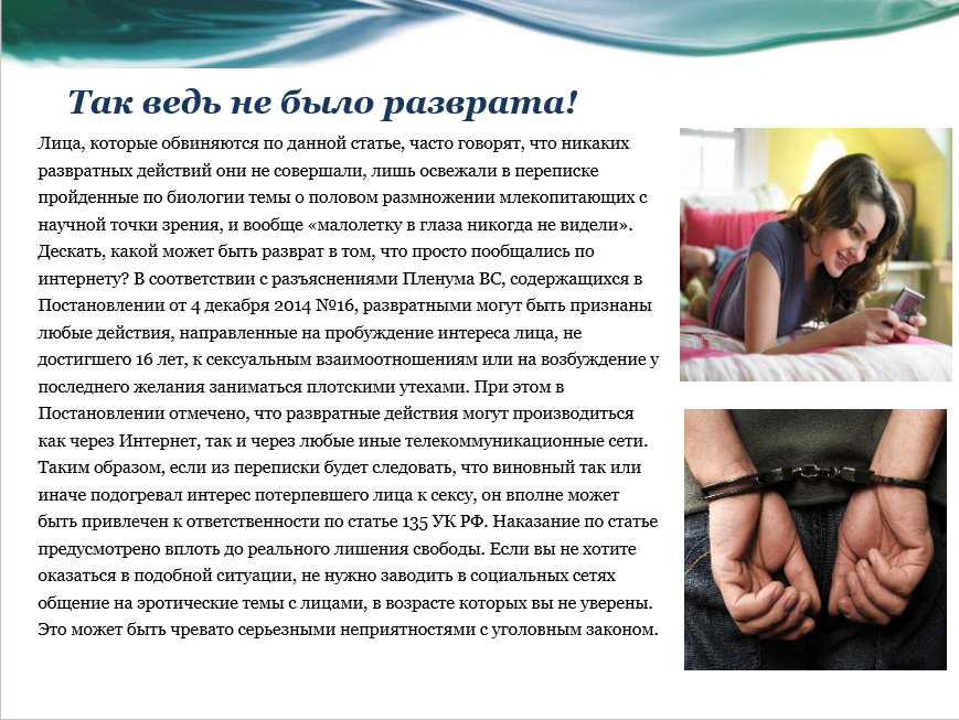 – Я не буду показывать откровенные материалы сексуального характера несовершеннолетним лицам, а также тем, кого они могут оскорбить;