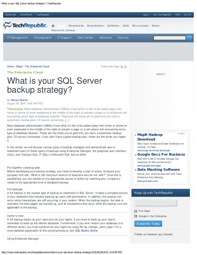 Database Backup and Recovery Best Practices