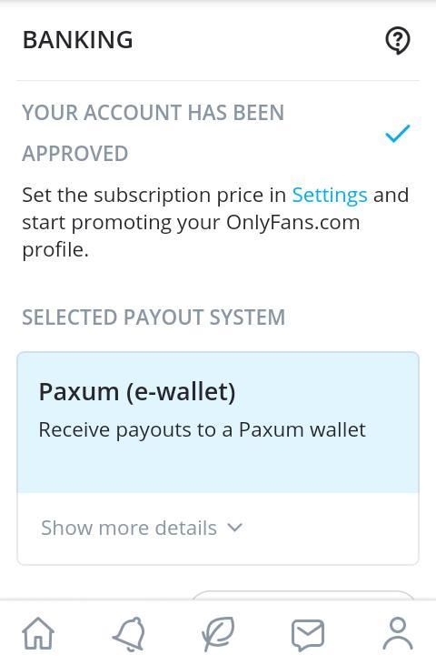 You are assigned a payout system based on your location . OnlyFans works with a few great merchants around the world to allow you to add your bank account or verified ePayments wallet to your account . Make sure that your account is verified and that your subscription price is set to ensure that you are paid in a timely manner .
