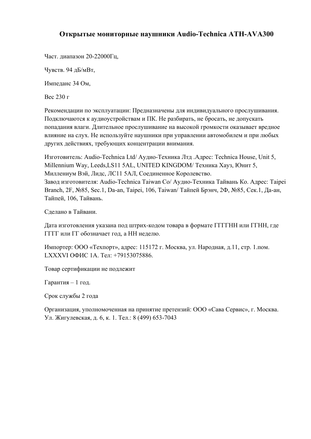 ООО "Аудиотехника Импорт" Москва (ИНН 9725036064)