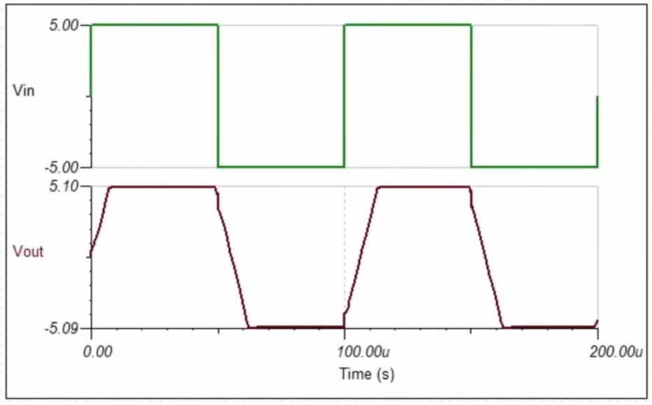 Если на ОУ подать сигнал прямоугольной формы, который меняет свое значение от 0V до 5V или от -5V до +5V, то операционный усилитель не сможет так же быстро его изменить.