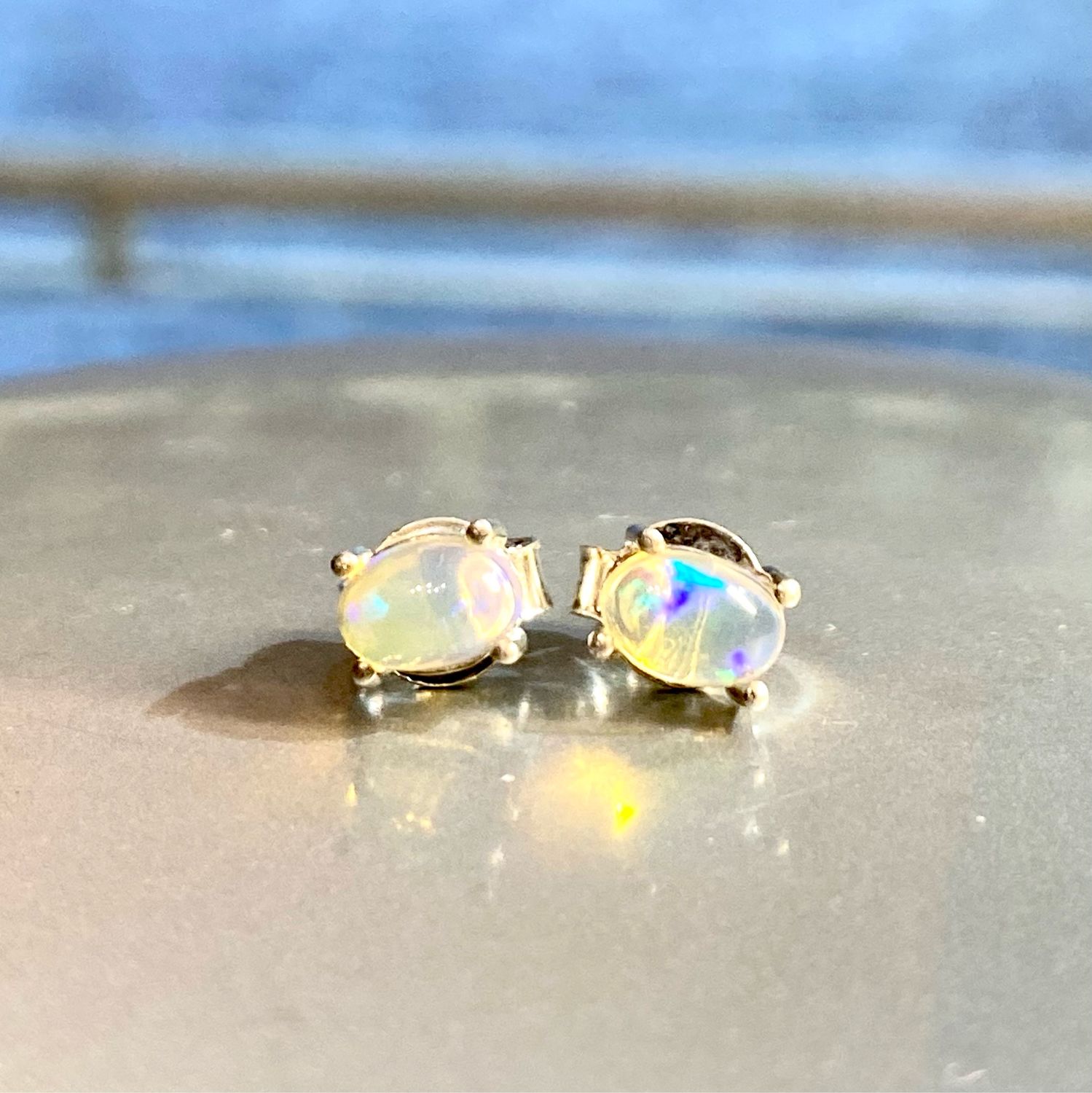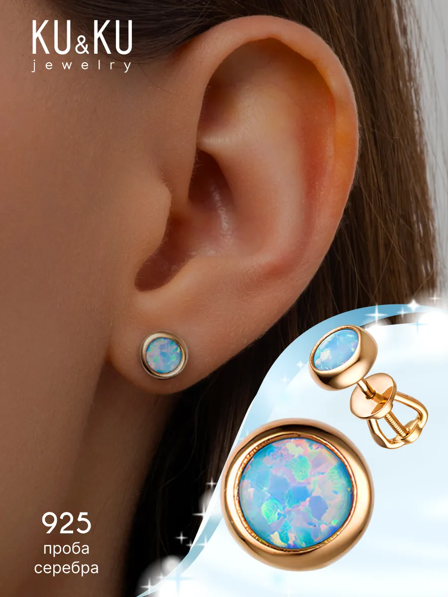 Опал серьги пусеты
