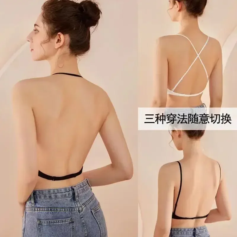 LXdzNMeyoGHere you can buy Open U-shaped Beauty Back Underwear Without Steel Ring Hanging Neck Style Small Chest Gathering Invisible Triangular Cup Bra with free delivery to your post office.