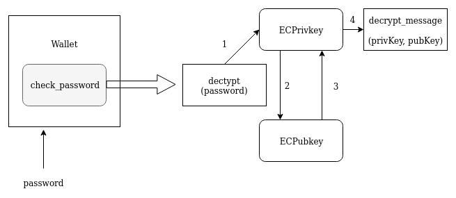 init class WalletStorage('path_to_walet') --> check_password(password) --> decrypt(password)
