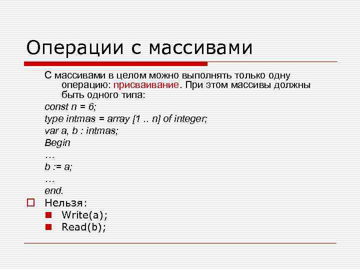 Операции над элементами массива