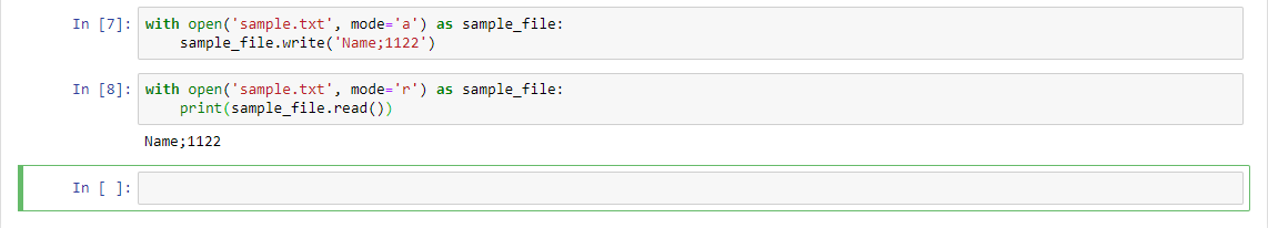 mode='a' - режим "добавить", от англ. append, то есть добавить в конец, и если будем читать в этом режиме, то увидим ошибку. Так же будет ошибка, если мы будем добавлять данные в файл, который не существует.