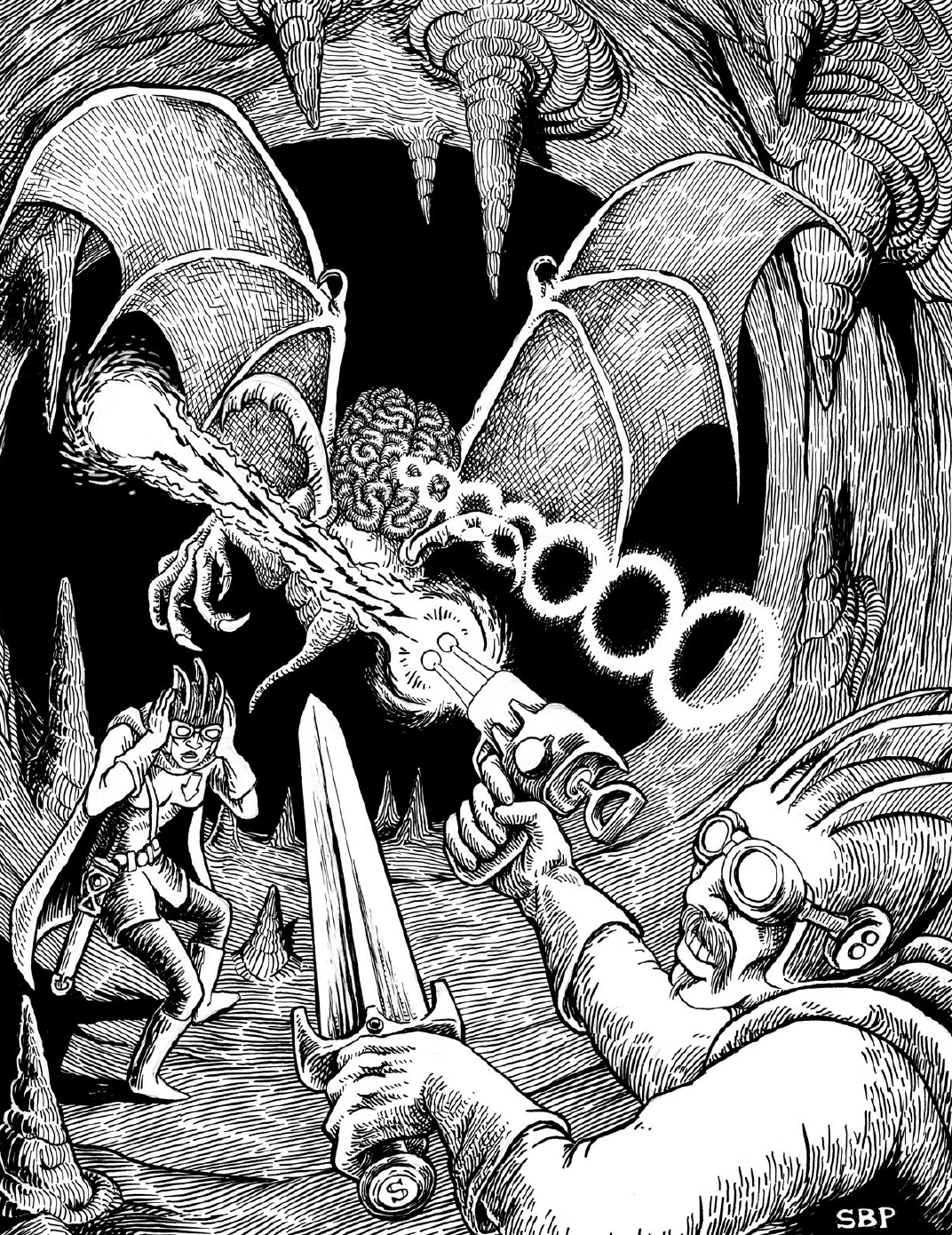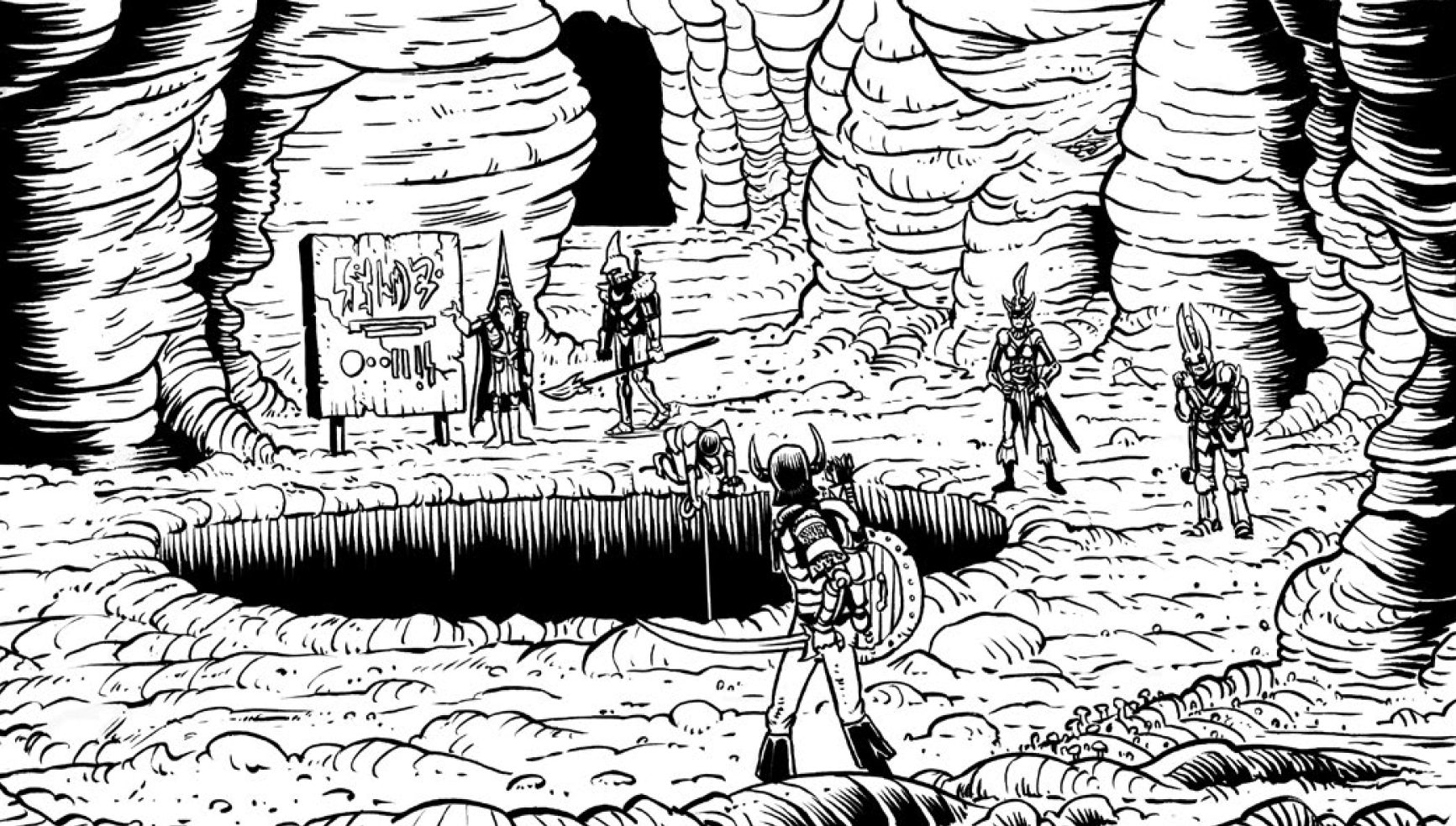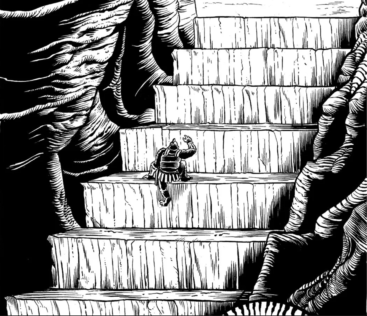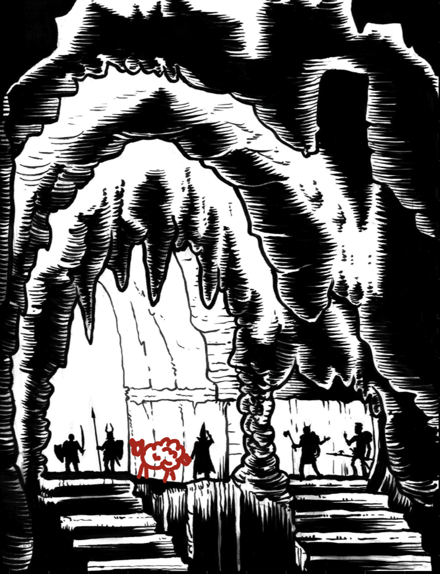 Итак, если вкратце, то приключение Operation Unfathomable - это такое очень особенное мега-подземелье, наполненное до отказа разной вирдятиной. Серьезно, там нет почти ничего "нормального" и "обычного". Даже пещерные ласточки там гигантские и очень любят воровать веревки у приключенцев, представители расы гуманоидных грибов - все поголовно ученые, тут и там встречаются пришельцы из других измерений, а самое серьезное местное божество - это огромная многоножка с человеческим лицом, Шаггат-Ка, Султан Червей. В общем, настоящий мифический подземный мир, довольно гонзовый по духу, со своими непривычными законами, странностями и отвязными приколами.