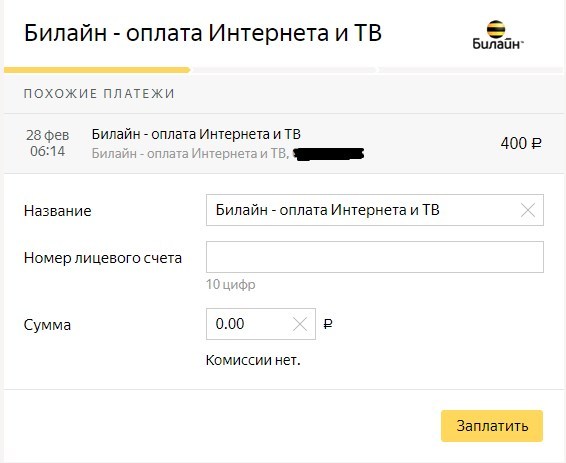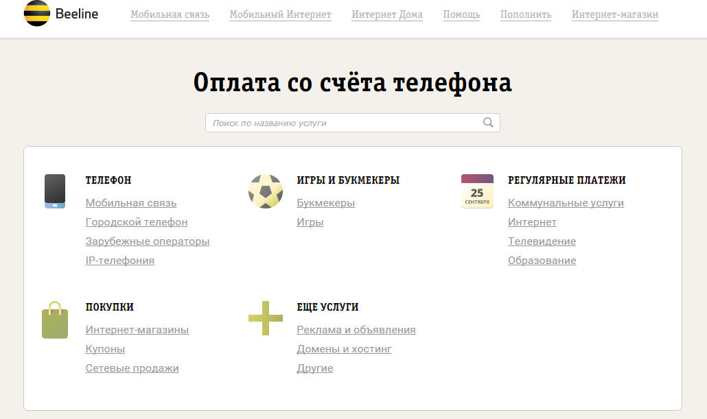 Оператор билайн оплата