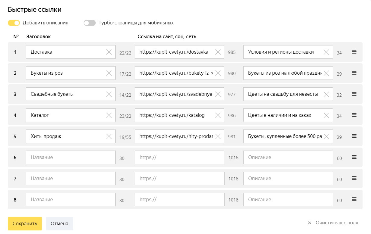 Описание быстрый ссылок