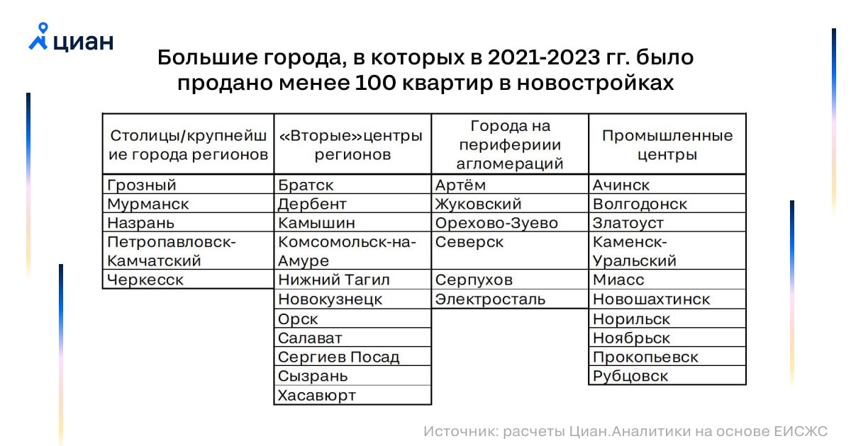 Описание крупных городов