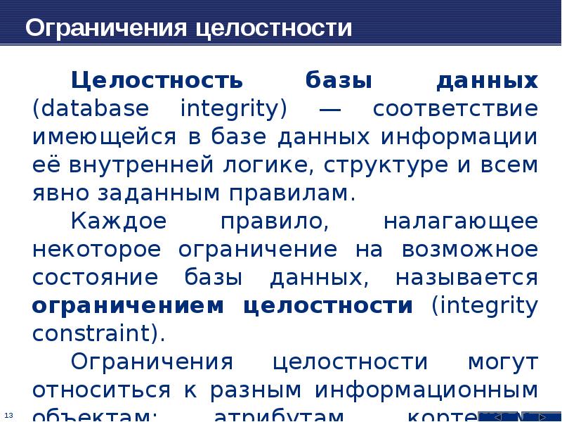 Описание ограничений целостности
