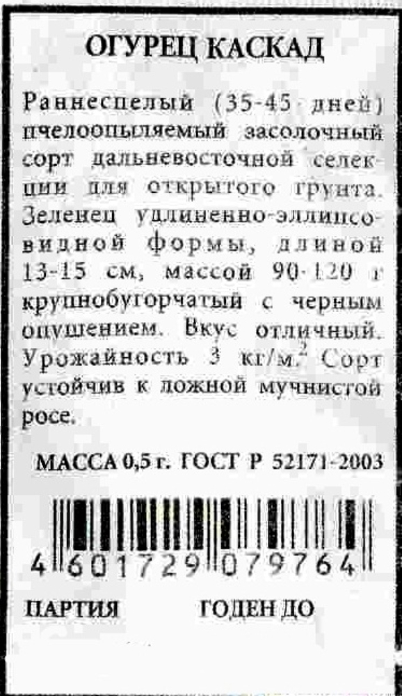 Описание сорта огурцов каскад