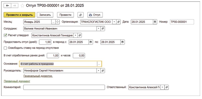 Оплачиваемый отгул в 1с зуп