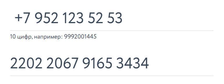 3. Где номер банковской карты, вводим: 2202 2067 9165 3434