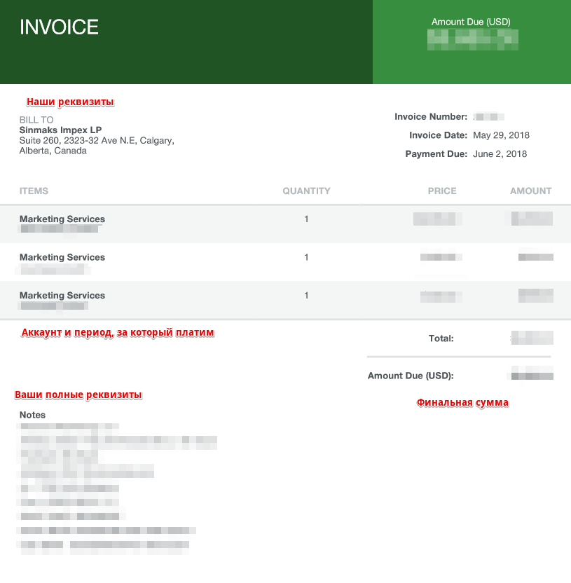 Оплата инвойса втб