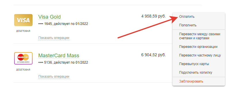 Оплата карты виза сбербанк