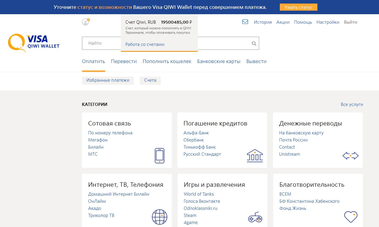 Оплата киви кошельком