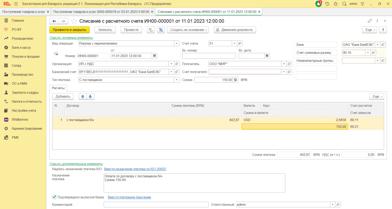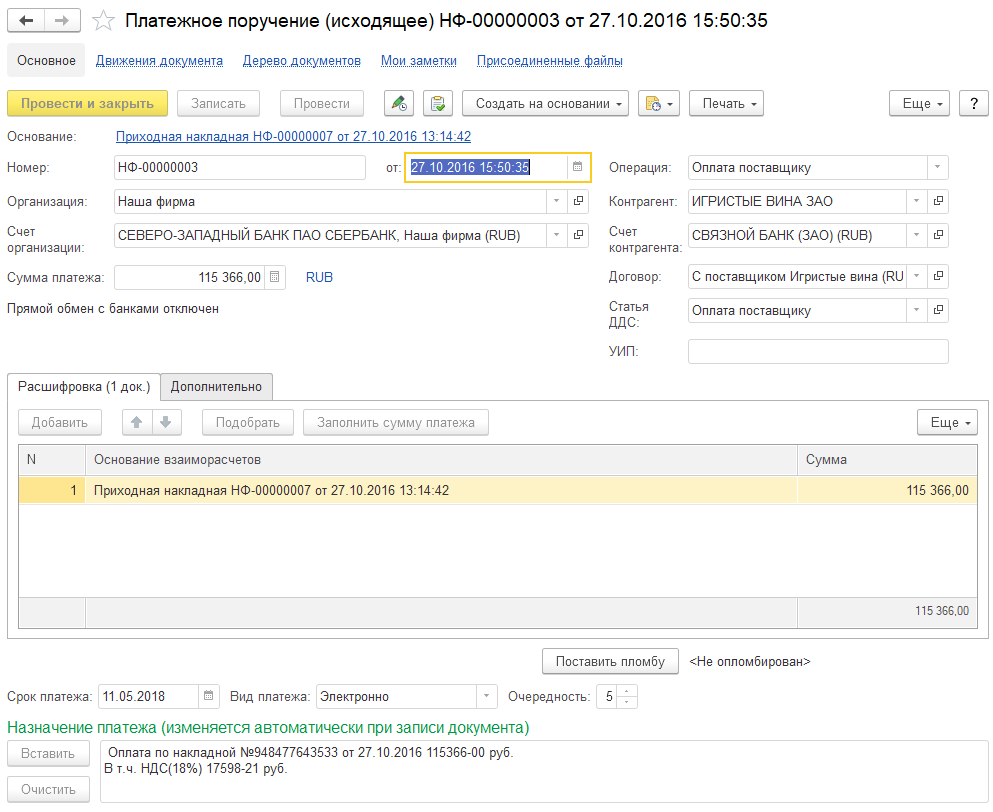 Оплата поставщиком комиссии