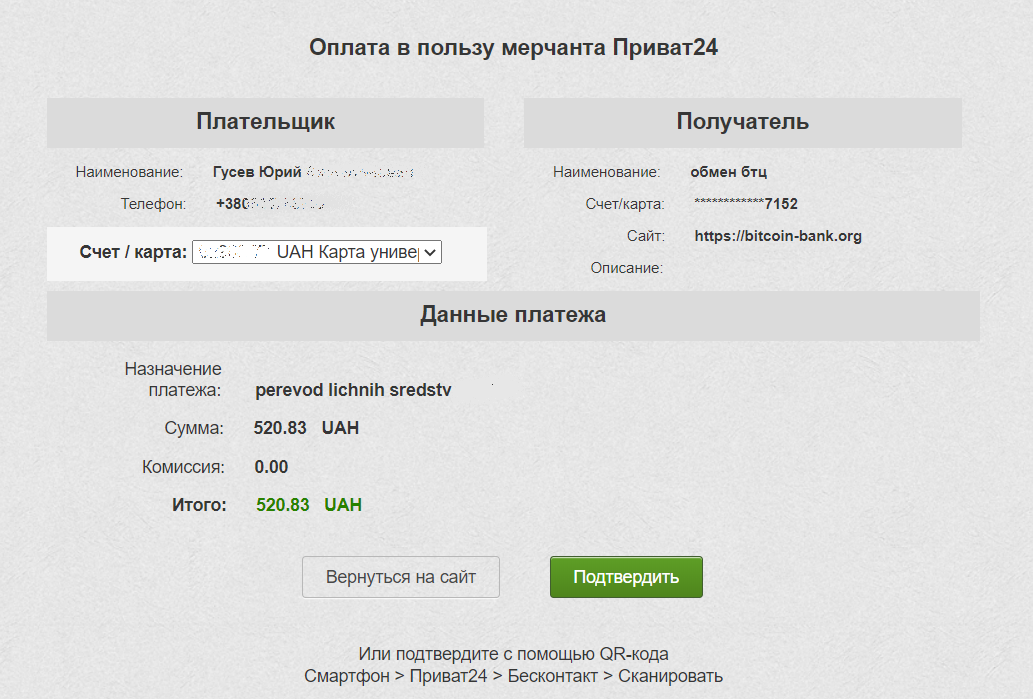 Оплата приват24