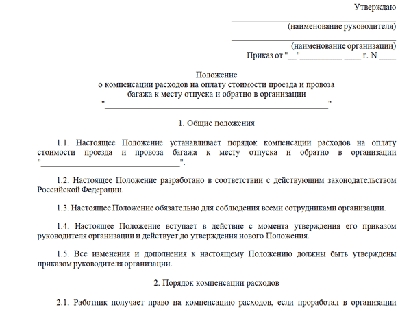 Оплата проезда в отпуск положение