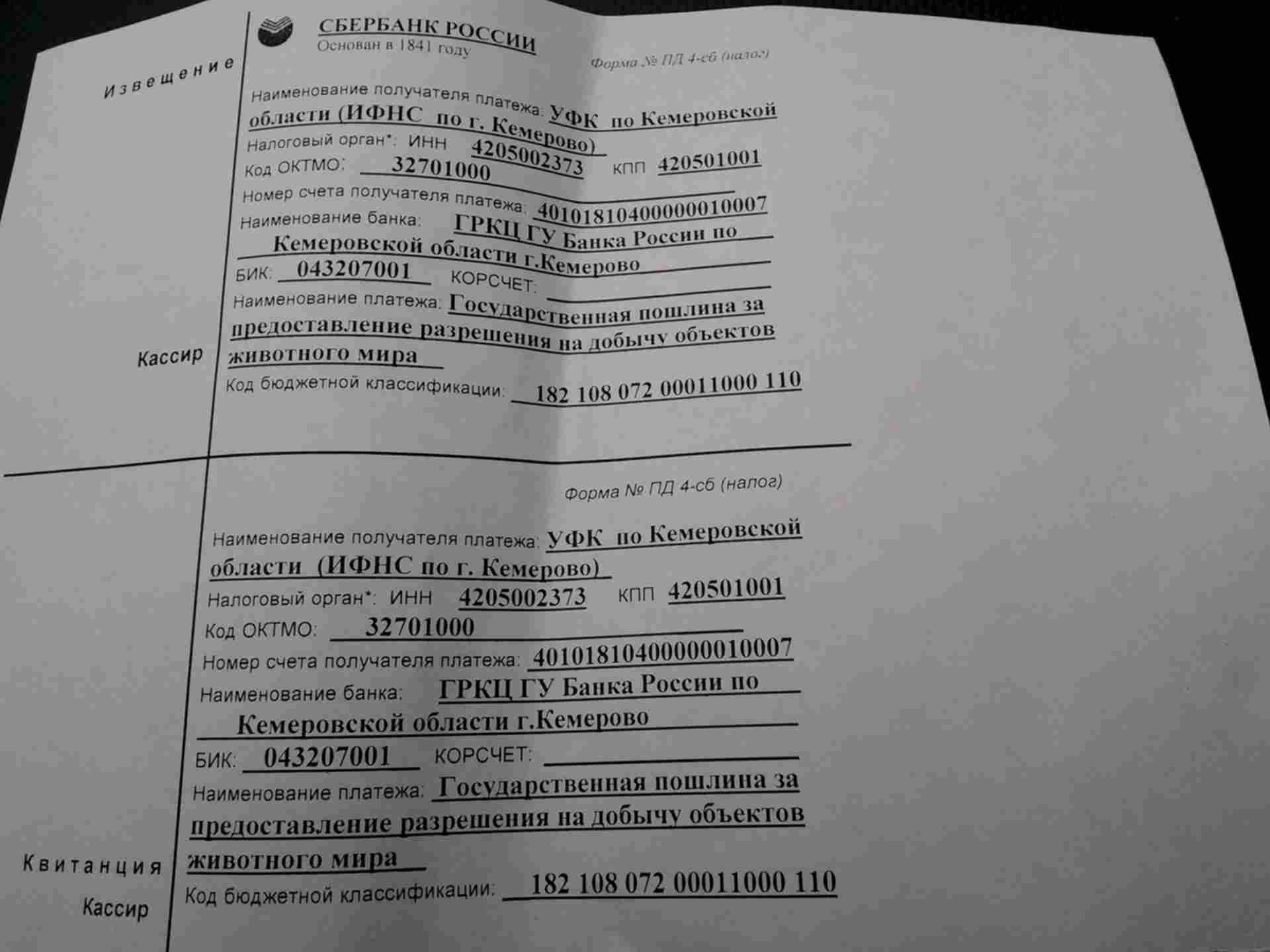 Оплата за выдачу разрешения