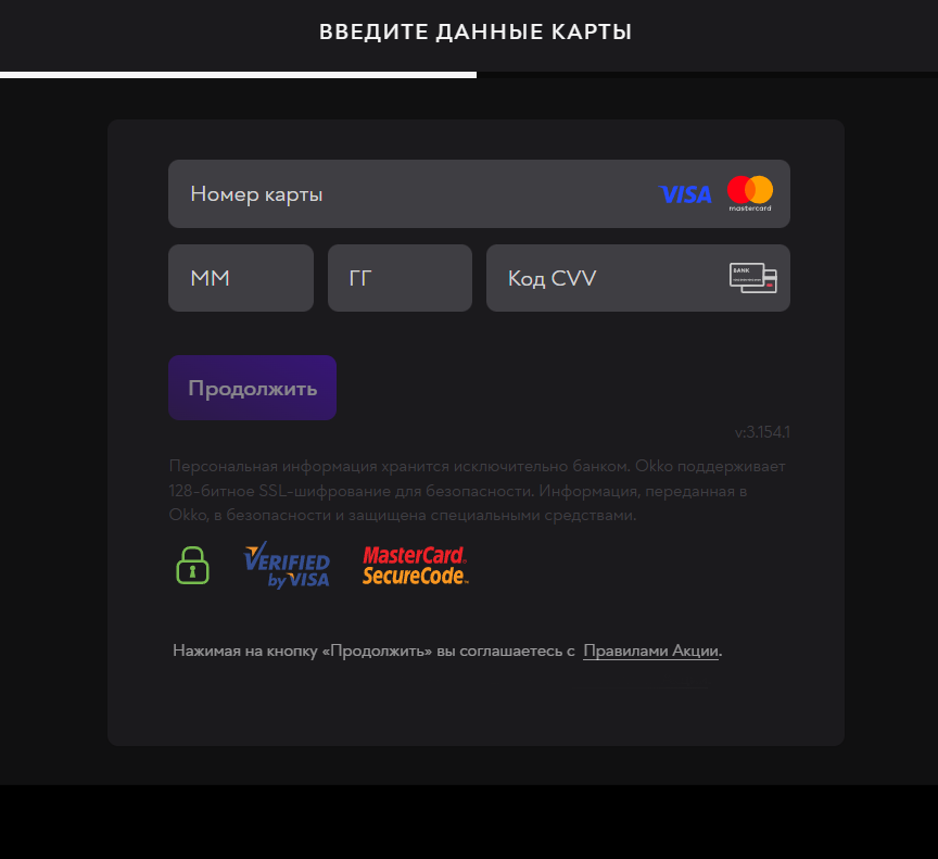 Оплатить окко картой