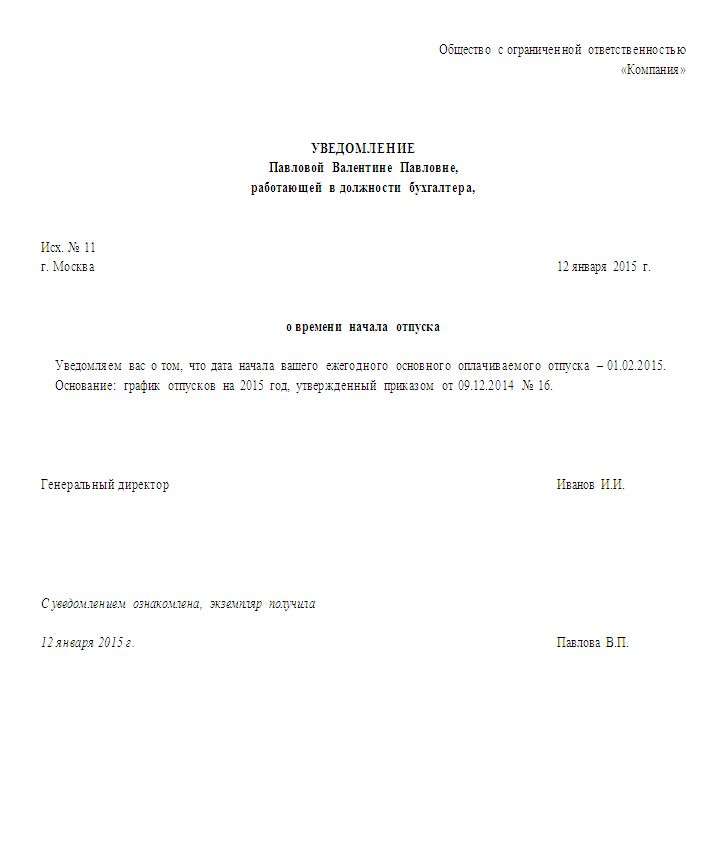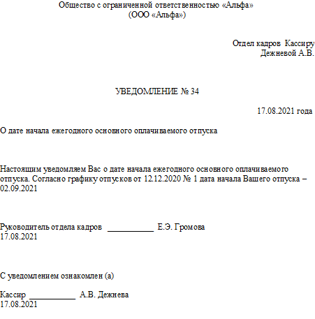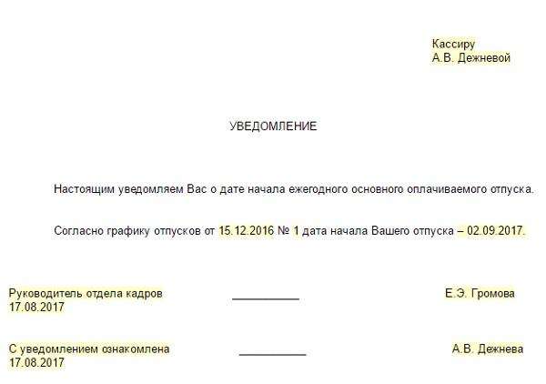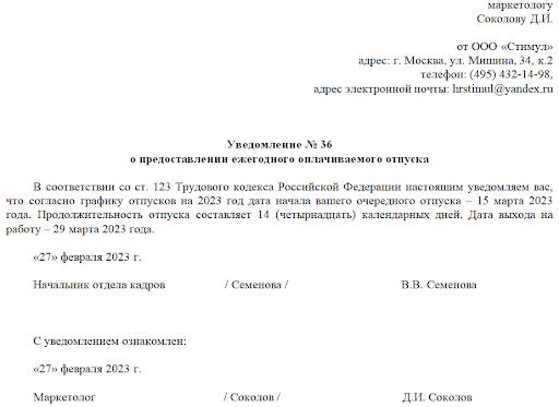 Оповестить об отпуске