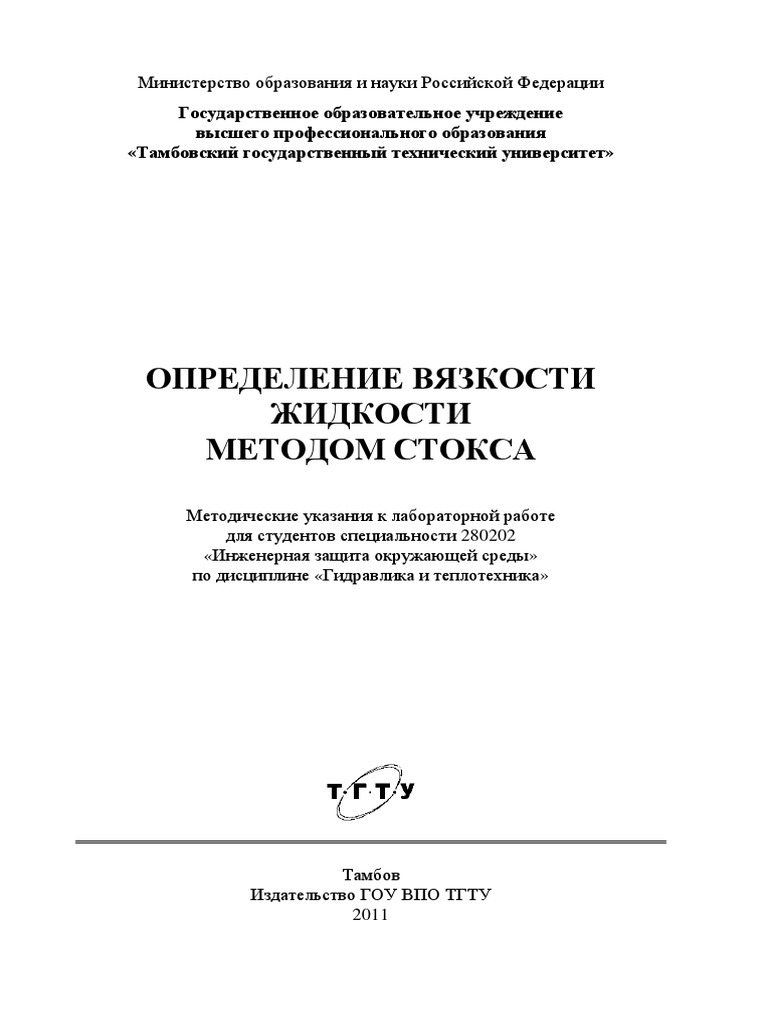 Определение Вязкости Методом Стокса Лабораторная Работа