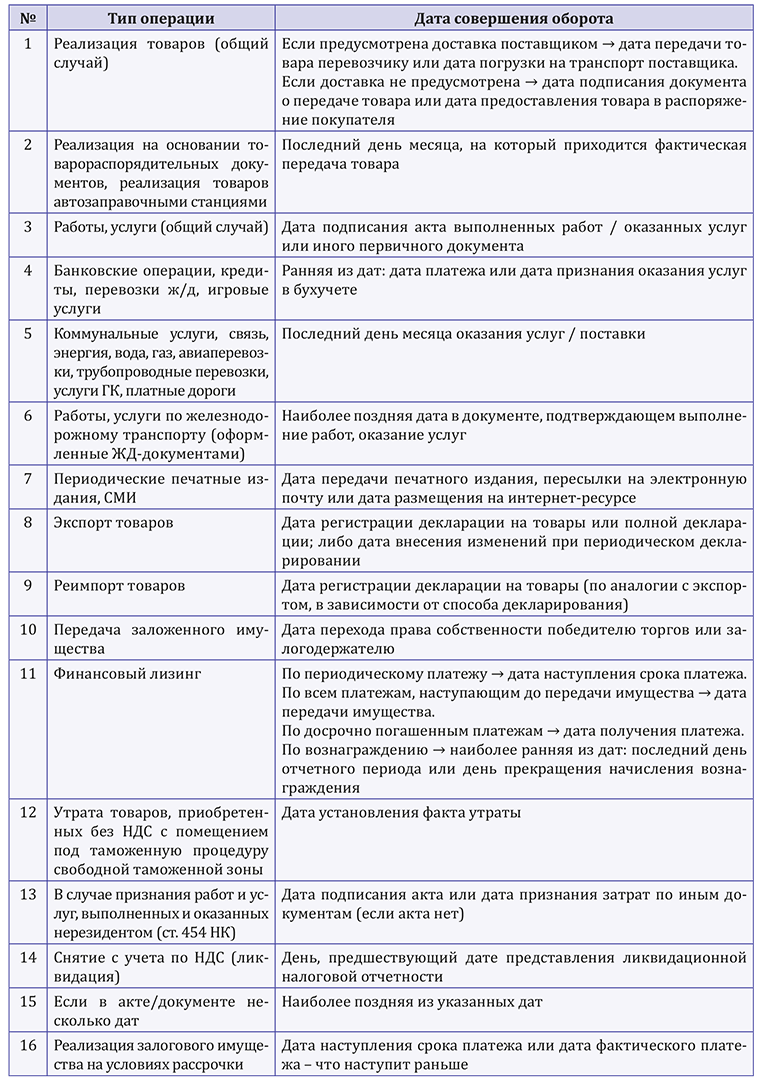 Определение даты реализации