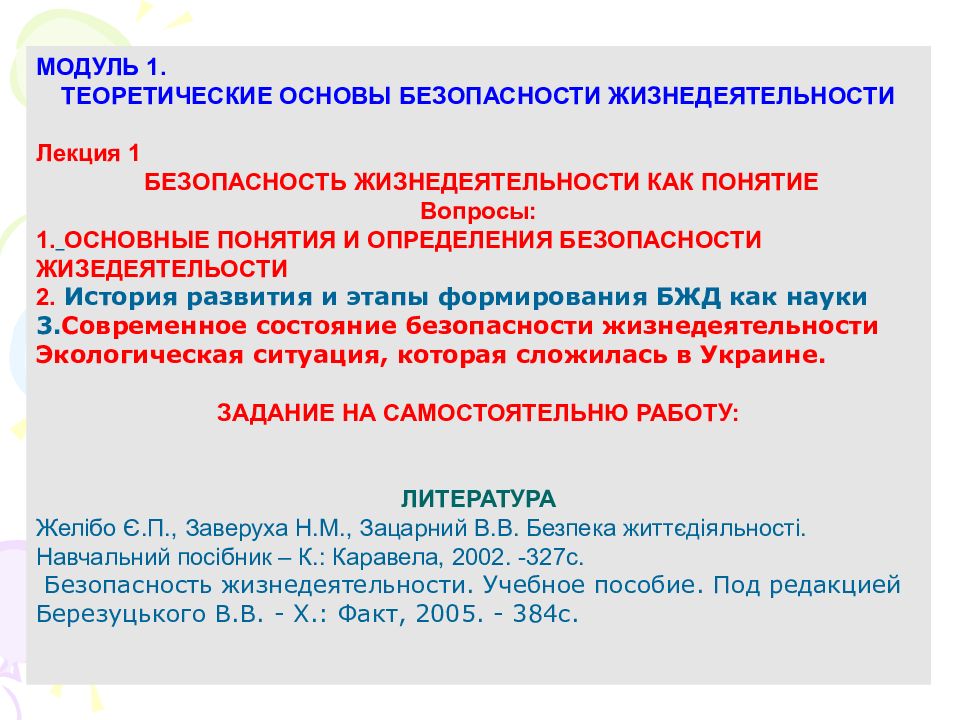 Определения основным терминам бжд