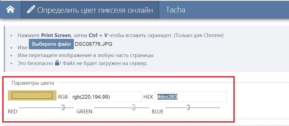 Определить цвет по изображению